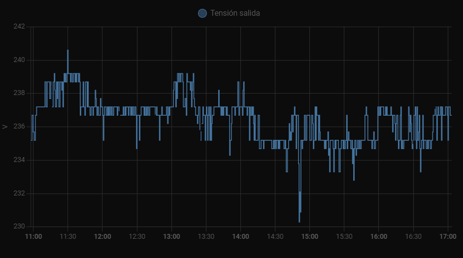 Si lo hemos puesto en la sección recorder veremos como baja el nivel de bateria cuando quitemos la tensión de entrada al SAI