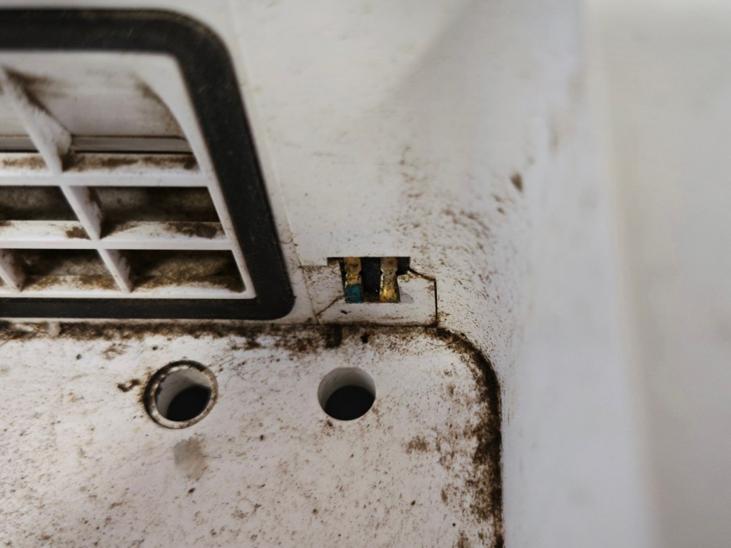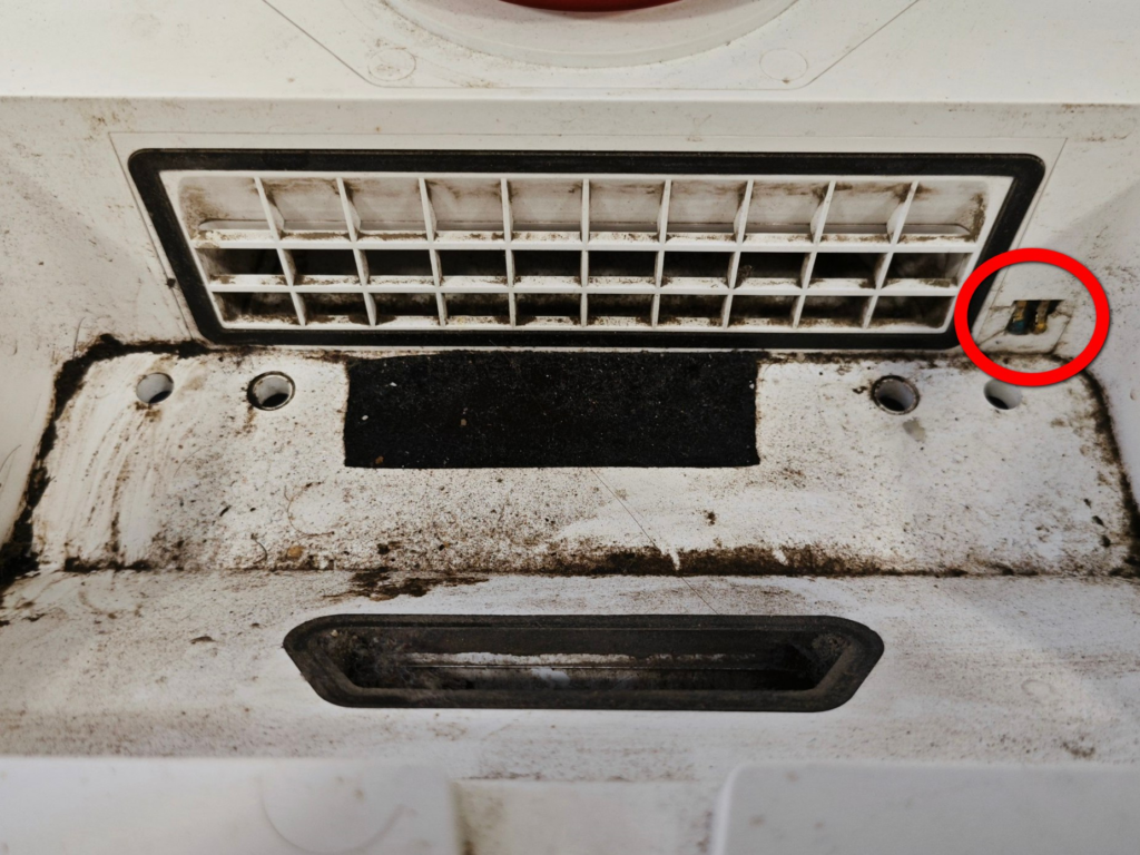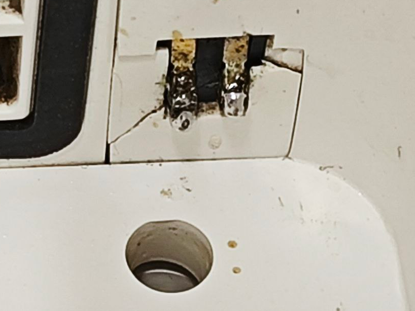 Una vez descartada cualquier obstrucción observe que el conector del aspirador al deposito de agua estaba sulfatado , este conector es el que esta ubicado en el circulo rojo